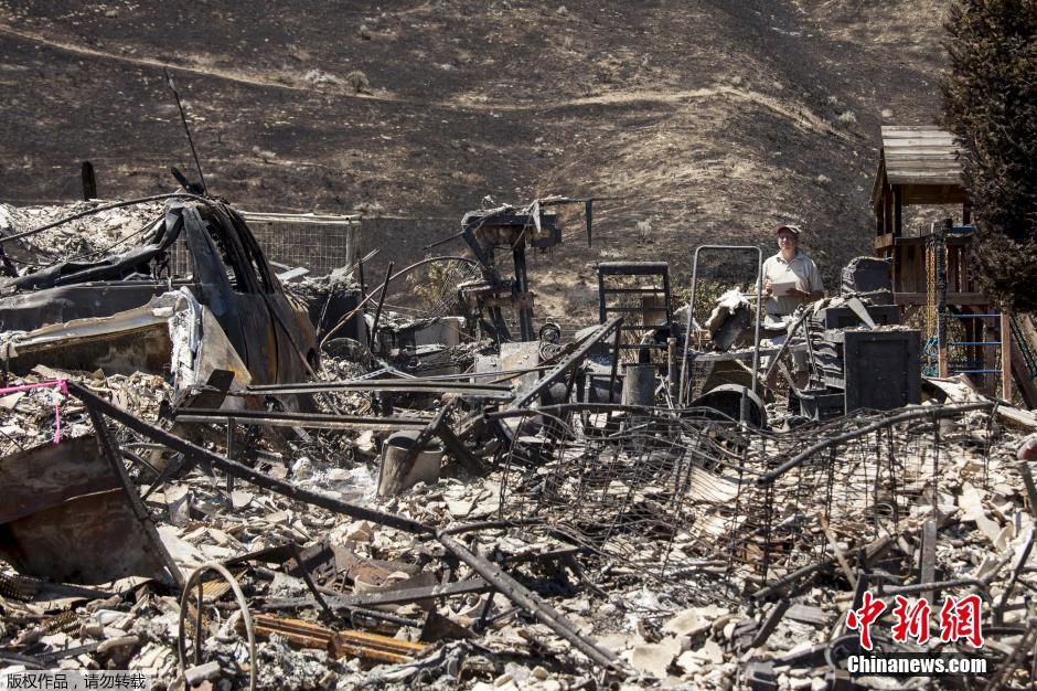 图为山火扑灭后,整座山变成光秃秃的焦黑一片就,仅剩废墟。