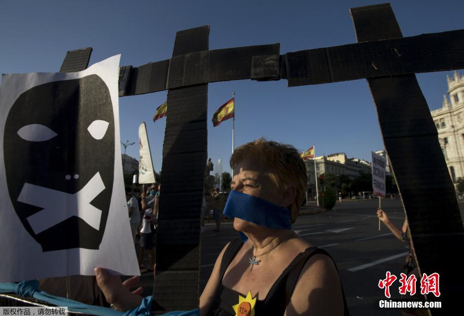 图为当地时间6月30日,西班牙马德里,民众抗议新公共安全法。
