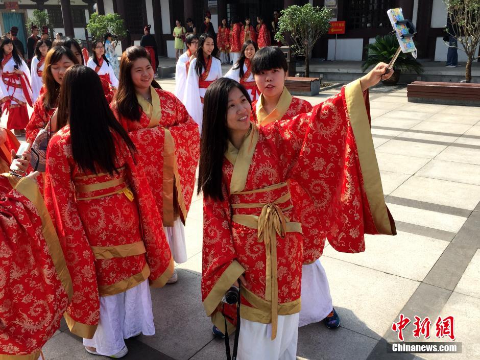 7月1日,来自香港科技大学、香港理工大学、香港中文大学等院校的百名香港大学生,在西安参与着汉服、行汉礼活动,感受中华传统文化魅力。 中新社发 张远 摄