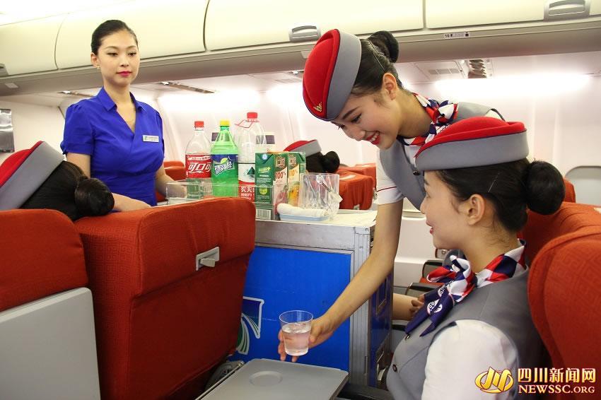 上午11点半,练习客舱服务技巧,很小的一件事对于空姐来说却很重要,她们要注意很多的细节。张进春 摄 图片来源:四川新闻网