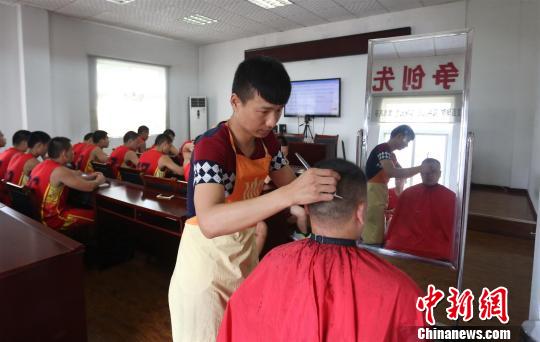 潘耀均给消防官兵理发。王申 摄