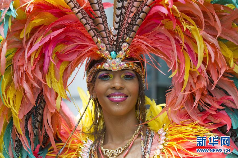7月7日,在加拿大多伦多,盛装的狂欢者在开幕式上进行展示。当日,2015年加拿大多伦多“加勒比狂欢节”开幕。这个被称为北美地区最大规模的加勒比狂欢节,将在3周时间里通过音乐、舞蹈、服饰及狂欢等内容的表演,为观众展示充满激情的加勒比文化和风情。新华社发(邹峥摄)