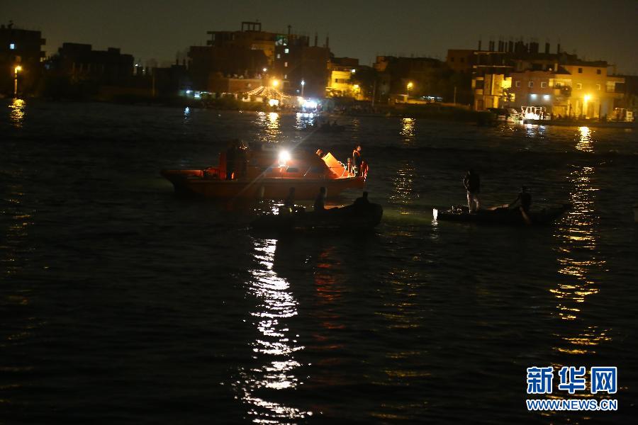 7月23日,在埃及开罗以西的吉萨省沃拉格区水域,救援人员进行搜救。埃及内政部23日凌晨发表声明说,22日晚间发生在尼罗河上的沉船事故造成至少19人死亡。22日晚,一艘载有30名乘客的游船和一艘货船在开罗以西的吉萨省沃拉格区水域相撞,游船受损后沉没。新华社发(艾哈迈德·戈马摄)