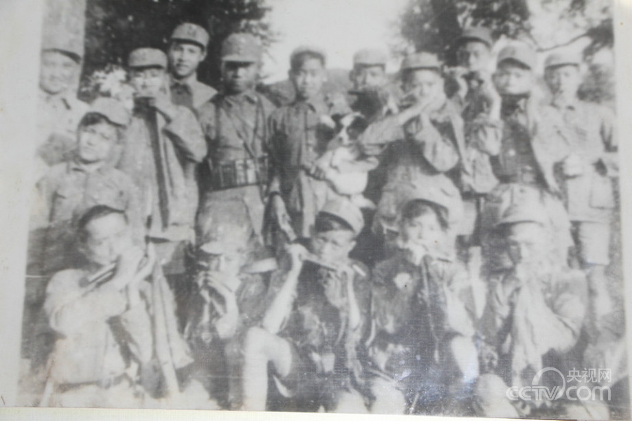 叶挺拍摄的新四军战地服务团儿童团的小乐队。(央视网记者 袁育堃 摄)