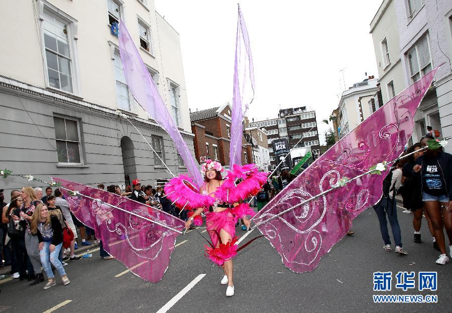8月30日,表演者参加在英国伦敦西区举行的诺丁山狂欢节儿童日游行。
