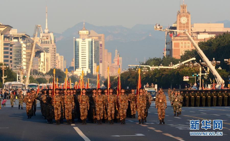 9月3日,中国人民抗日战争暨世界反法西斯战争胜利70周年纪念大会将在北京隆重举行。这是受阅部队集结后演练。 新华社记者 朱祥 摄