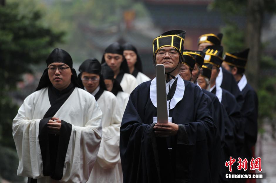 9月18日是中国农历八月初六上丁日,四川都江堰文庙举行秋季祭孔大典。现场从排班就位、迎神、奠帛初献到送神、望燎等共分十大部分,复原了明代六佾舞和雅乐,阵容庞大、仪程庄重完整,吸引了各地游客参观。据介绍,古代祭孔大典称为“祭丁”或“丁祭”,主要有仲春、仲秋二祭,即农历二月、八月的第一个“丁日”。 张浪 摄
