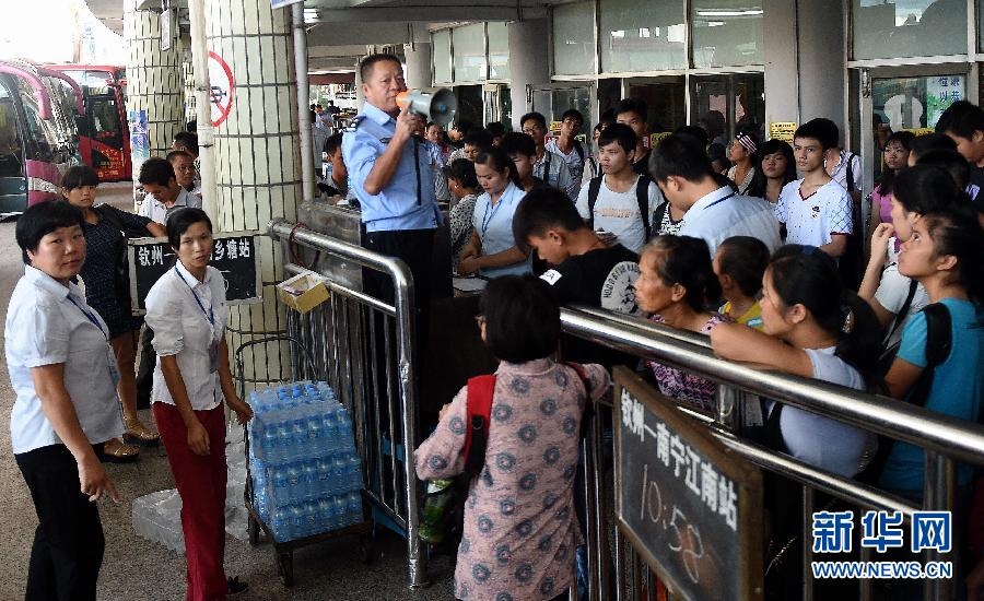 10月7日,乘客在广西钦州市汽车总站等待上车。当日是“十一”小长假的最后一天,全国各地迎来返程客流高峰。 新华社记者 张爱林 摄
