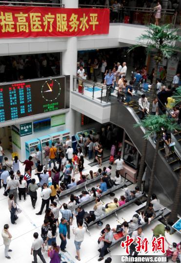 10月8日,福州一医院内人头攒动,如同假日里的火车站一样。当日是国庆长假后上班第一天,福州各大医院迎来就诊高峰。 张斌 摄