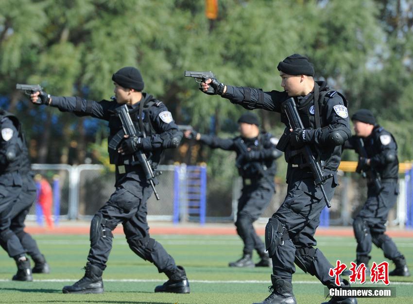 10月12日,吉林省公安机关警务实战技能比武活动拉开帷幕。技能比武共设6个比赛项目,分别为警务实战理论知识考试、手枪应用射击、反恐制暴武力使用公开课、标记弹推进、奔袭障碍及手枪快速射击、狙击射击。开幕当天,由长春市公安局特警支队、吉林省公安边防总队等带来警务实战技能演练、刺杀操等多个汇报演练科目。张瑶 摄