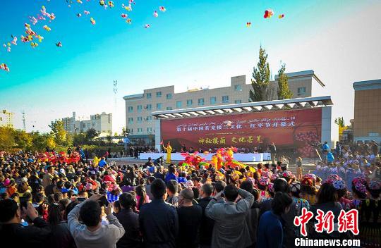 新疆若羌县第十届楼兰文化·红枣节简短的开幕式,吸引众多周边农牧民前来参加。 刘新 摄