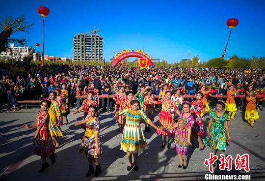 开幕式上维吾尔姑娘跳起欢快的麦西来甫。 刘新 摄