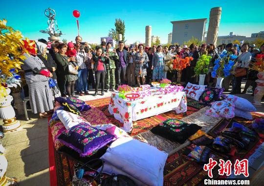 活动现场,当地农牧民制作的手工艺品成为焦点。 刘新 摄