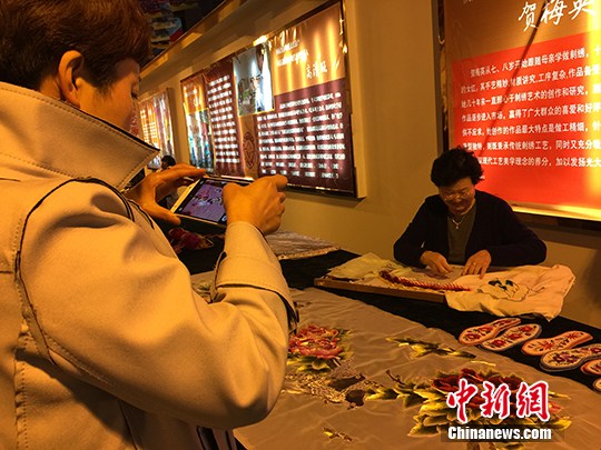图为刺绣大师展示陇秀精湛技艺。 徐雪 摄