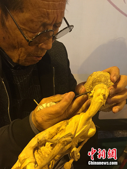 图为庆阳民间艺人进行雕刻。 殷春永 摄