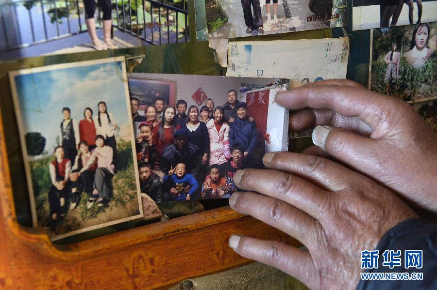 在宁夏泾源县六盘山镇大庄村,今年72岁的张玉成老人在家中翻看过年时拍的全家福照片。他的老伴去世20多年,两个儿子和三个女儿都在外地打工(10月15日摄)。