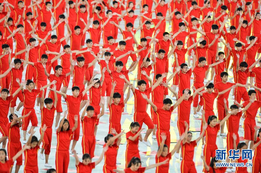 10月18日,演员在开幕式上进行表演。 当日,第一届全国青年运动会开幕式在福州海峡奥体中心主体育场举行。 新华社记者李响摄