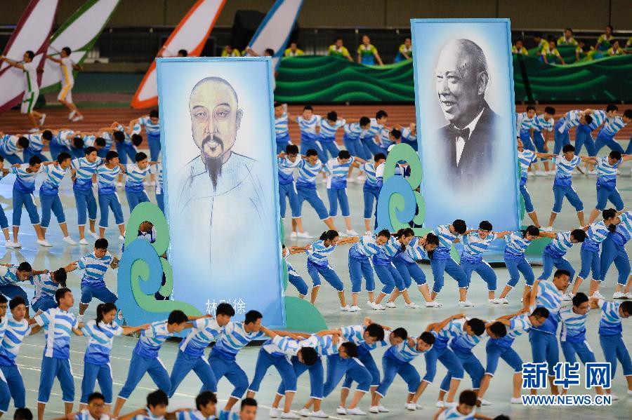 10月18日,演员在开幕式上进行文艺表演。 当日,第一届全国青年运动会开幕式在福州海峡奥体中心主体育场举行。 新华社记者李响摄
