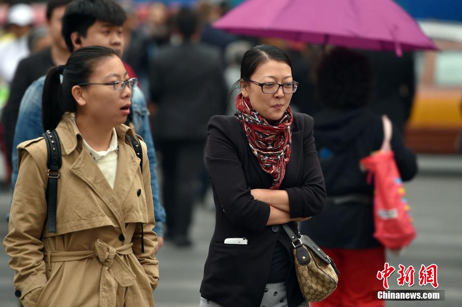 10月20日,北京迎来连续三天的降温降雨天气,街头行人换着冬装出行。当日,北京最高气温仅为14℃,明后天气温还将继续走低,最高气温仅12℃。今明天或将连创下半年最高气温新低,民众出行需注意防寒保暖。据悉,此前北京今年下半年的最高气温最低值为15.7℃,本轮降温将刷新这一最低值。 中新网记者 金硕 摄