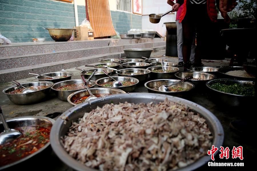 羊肉泡馍是当地的特色食品,一碗碗热腾腾的羊肉泡馍暖了老人们的心。 陈卫 摄 图片来源:视觉中国