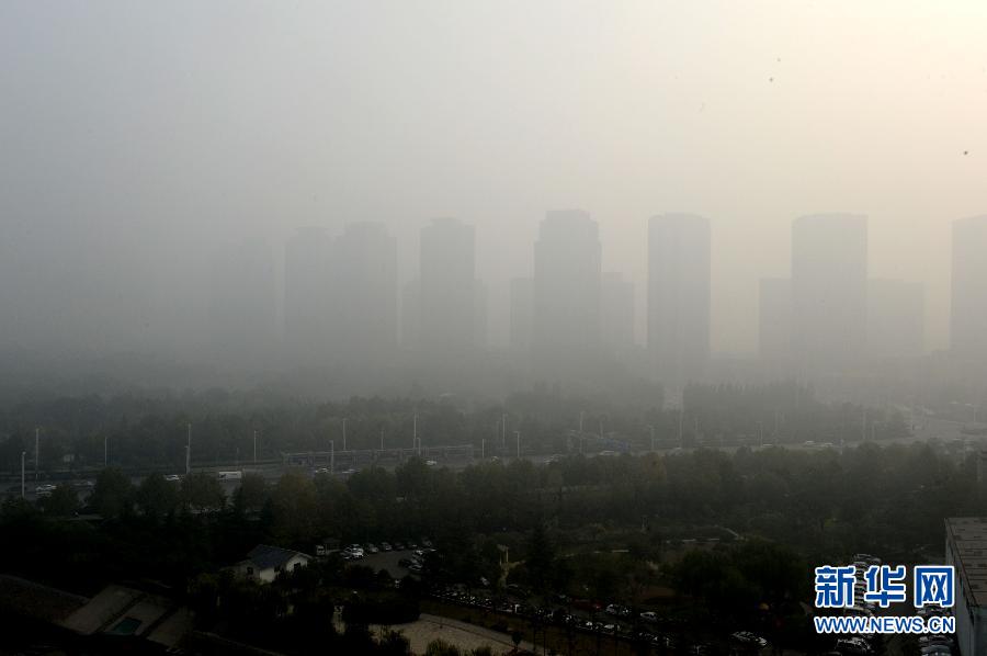 10月21日,河南郑州市区建筑被雾霾笼罩。 新华社记者朱祥摄