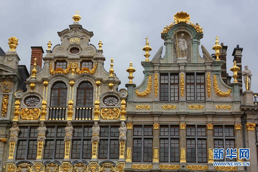 这是10月20日拍摄的比利时布鲁塞尔大广场西北立面局部。新华社记者龚兵摄