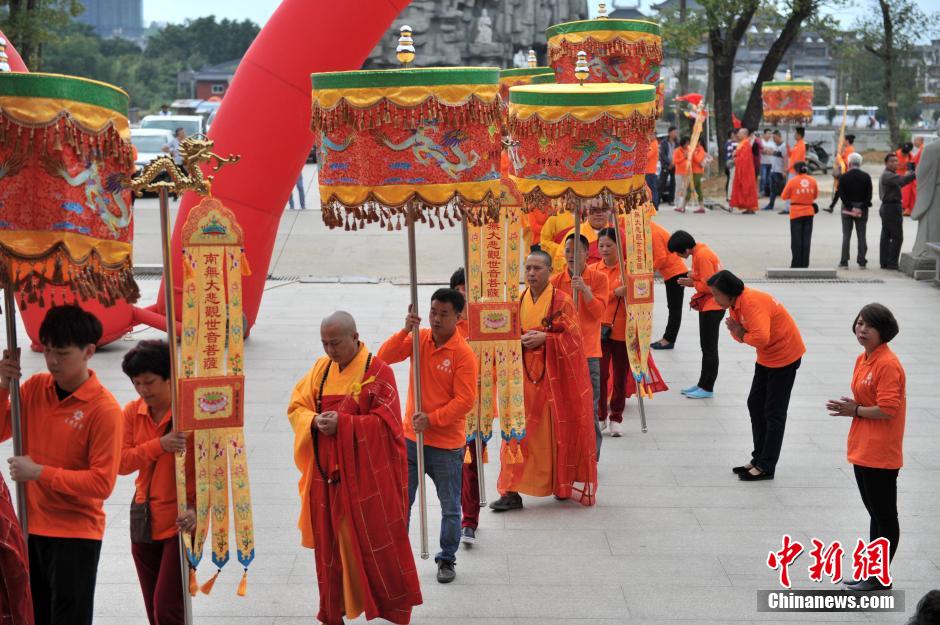 10月21日,为纪念抗战胜利70周年暨林则徐诞辰230周年,闽台万圣佛圣会在福州万佛寺举行,闽台百名法师及海内外信众为抗战英烈诵经超度,为国泰民安、风调雨顺祈福。图为庄严的法会现场。 吕明 摄