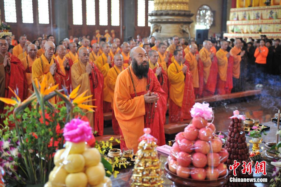 图为福州涌泉寺方丈普法法师主持严华道场祈福仪式。 吕明 摄