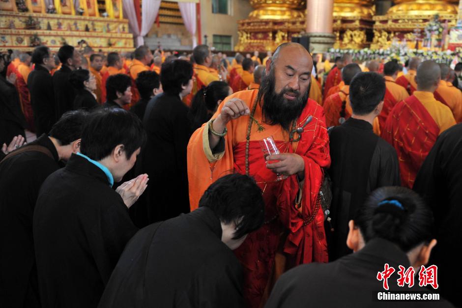 图为福州涌泉寺普法法师为信众祈福。 吕明 摄