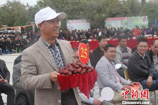 10月20日,有“中国红枣之都“之称的新疆麦盖提县举行红枣王评选大赛,该县三乡种植的灰枣获得了”红枣王“,并拍出150万元天价。