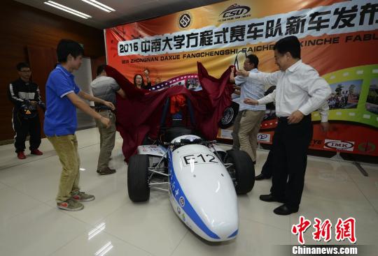 赛车相关人员为纯电动方程式赛车揭幕。杨华峰 摄