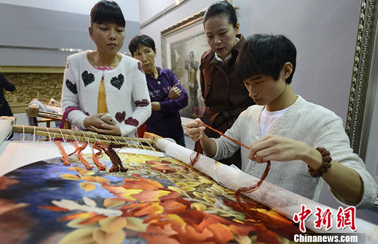 90后“绣哥”的针法吸引女市民围观。 杨华峰 摄