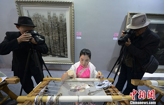 10月31日,由湖南工艺美术职业学院承办的第三届湘绣文化节暨第五届湖南工艺美术品博览会在湖南国际会展中心展出,陶瓷、木雕、湘绣、泥塑等万余件“非遗”作品现场亮相,一位90后“绣哥”的针法更是吸引了众多女市民围观。