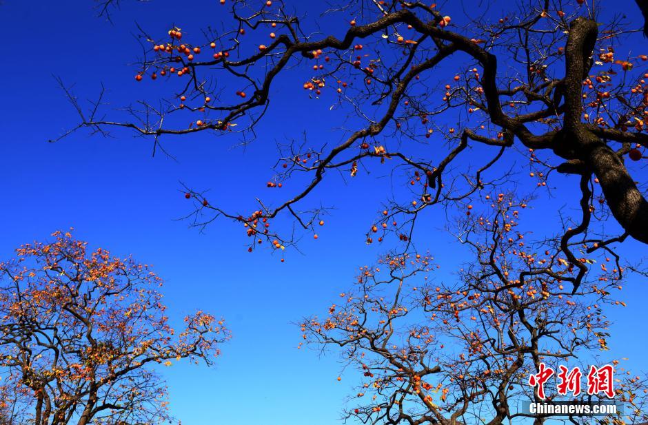 霜降节气之后,山东大地树叶纷纷飘落,青州柿子沟两旁陡峭的山坡上,柿子树虬劲有力的枝头,挂满红灯笼般的红柿子,在阳光下份外鲜明。