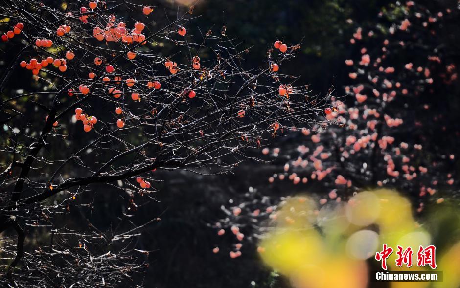 山谷中的柿子树上的红柿子,在阳光下露出美丽的光泽,就像一群欢快的小鸟在枝头跳跃。秋歌 摄
