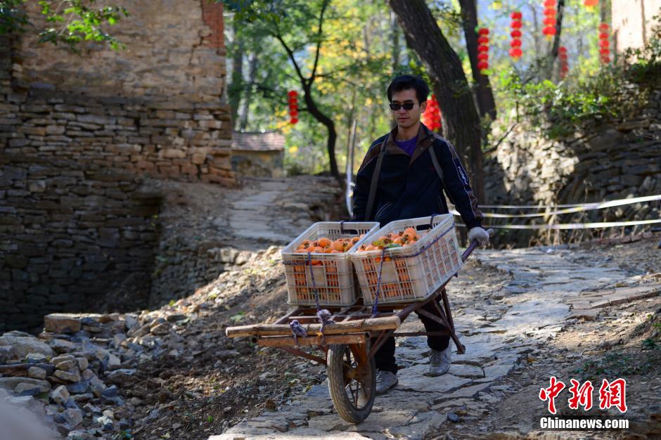 跟随村民的独轮车,柿子沟中上白洋村古朴的建筑出现在人们眼前,这个深山中的小村绿树成荫,靠山吃山,村民生活悠闲,年轻人穿着入时。秋歌 摄