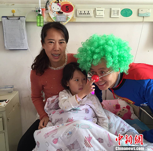 10月31日,由数十名志愿者组成的山西“小丑医生”来到山西省太原市妇幼保健院,陪这里的患儿度过了一个特殊的万圣节。