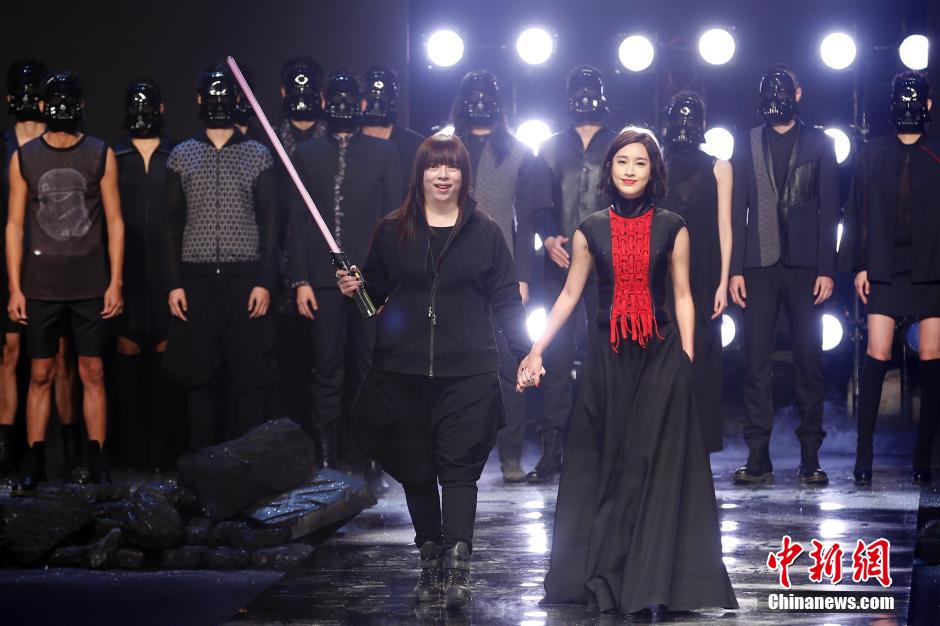 10月31日,台湾设计师手持“光剑”登台。中新社记者 盛佳鹏 摄