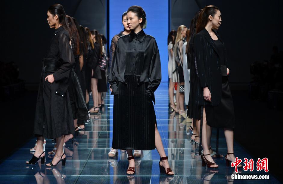 10月30日,模特在北京举行的中国国际时装周时尚女鞋发布会上展示时尚女鞋。 中新社发 吴蔚 摄