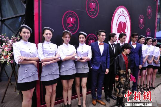 10月31日,重庆大坪时代天街一女性主题餐厅开业,高挑美女模特穿餐厅制服迎客。图为高挑美女模特穿餐厅制服迎客。 陈超 摄