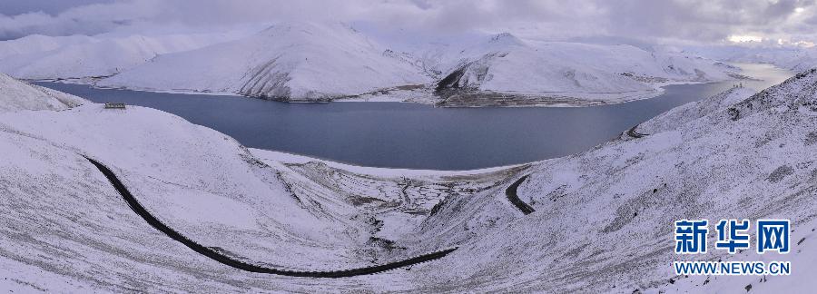 这是羊卓雍错雪景(10月31日摄)。雪后的羊卓雍错在银装素裹的山脉以及白茫茫的天空映衬下显得晶莹剔透、静谧、圣洁。 新华社记者 刘东君 摄