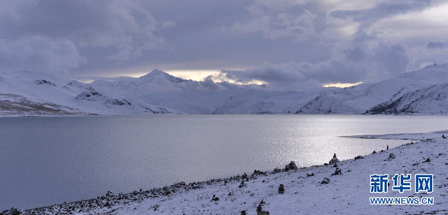 这是羊卓雍错雪景(10月31日摄)。雪后的羊卓雍错在银装素裹的山脉以及白茫茫的天空映衬下显得晶莹剔透、静谧、圣洁。 新华社记者 刘东君 摄