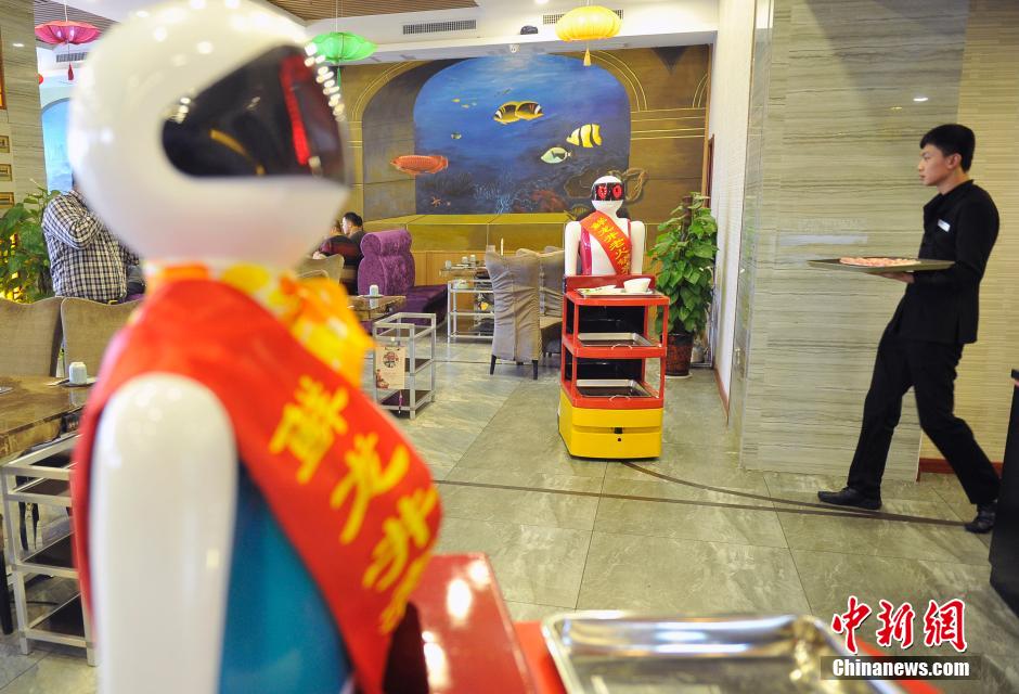山西一餐厅雇机器人传菜 可代替两人劳动力