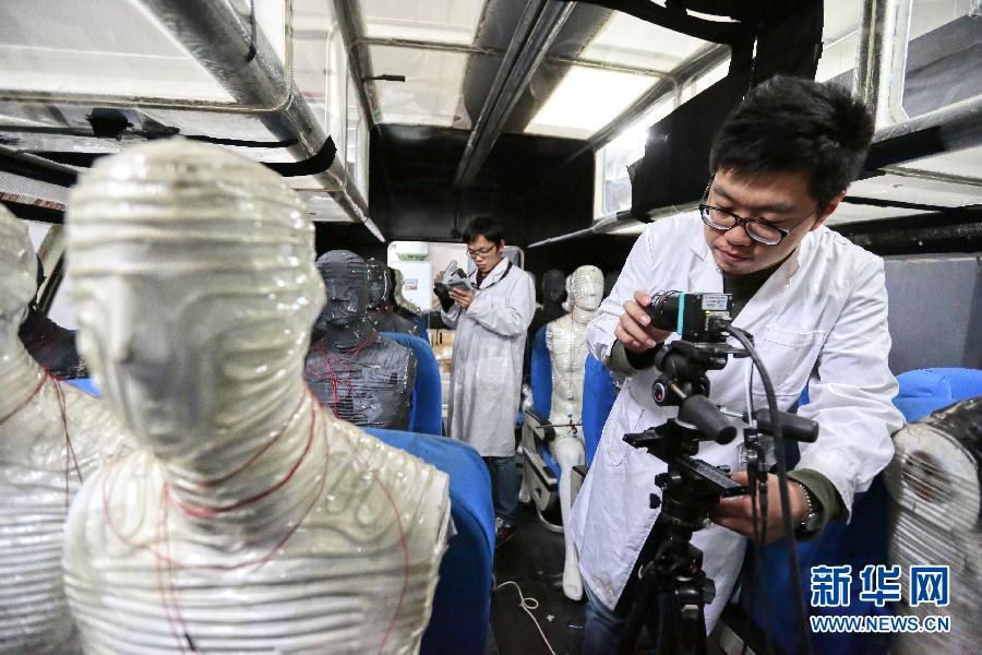 11月2日,科研人员在天津大学模拟座舱空气环境实验平台对机舱进行监测。新华社发(游思行 摄)