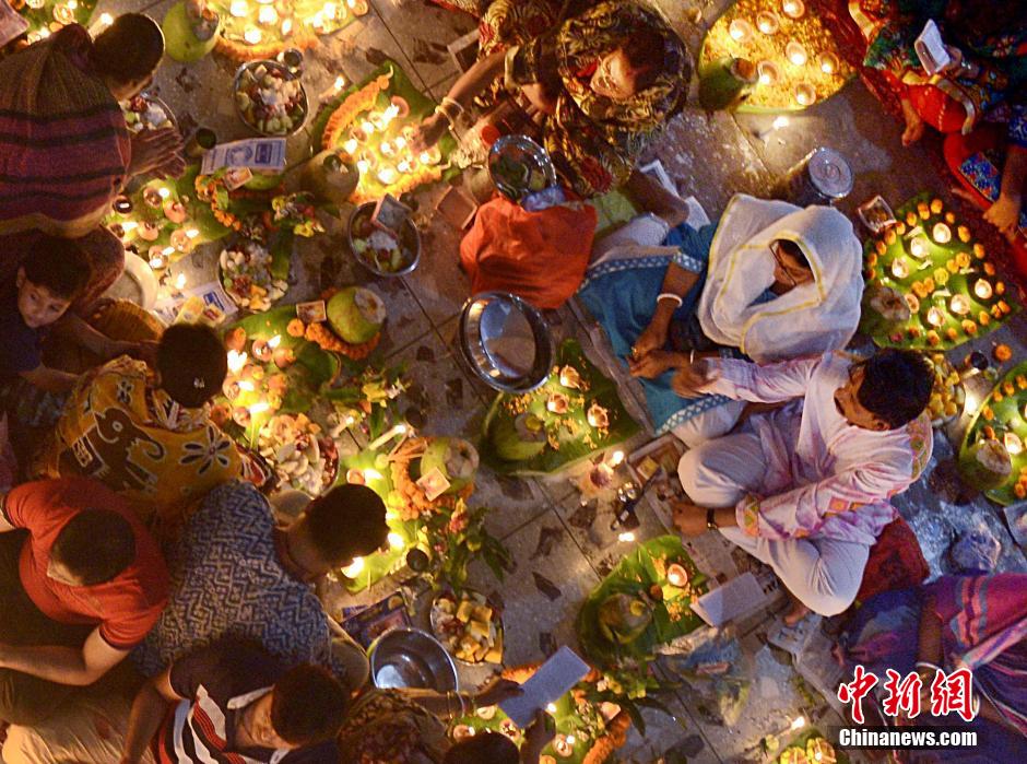 孟加拉国信徒燃灯祈祷 场面壮观