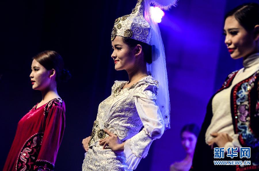 11月5日,在乌鲁木齐剧院举办的展示会上,模特身着获奖的设计作品进行展示。当日,新疆女性“靓丽工程”服装设计大赛服装展示会在乌鲁木齐举行。今年4月至6月,新疆维吾尔自治区妇联在全疆范围内征集优秀的服装设计作品参赛,来自新疆14个地州市的224位设计师报送了2000多套服装设计作品,并于日前评选出特等奖、最佳工艺奖、最佳创新奖等奖项。新华社记者 王菲 摄