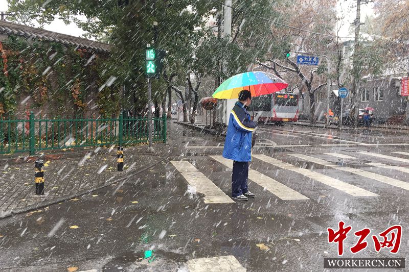 11月6日,北京迎来今年入冬以来的首场降雪,城区在清晨出现雨夹雪,并逐渐变大,气温降至1℃。据了解,直至8日,北京都将遭遇连续降雪天气。 中工网记者 张起晨摄。