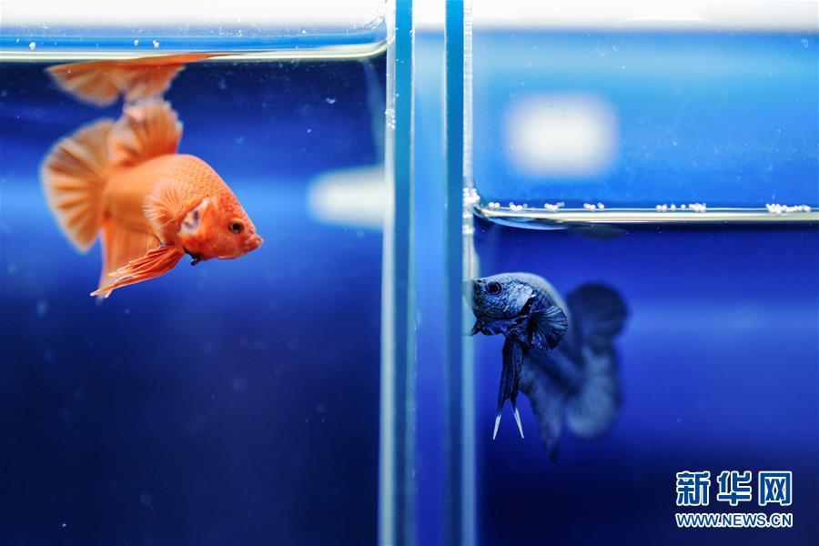 11月19日在泰国曼谷蒙通他尼会展中心举行的宠物展上展出的两条热带观赏鱼。