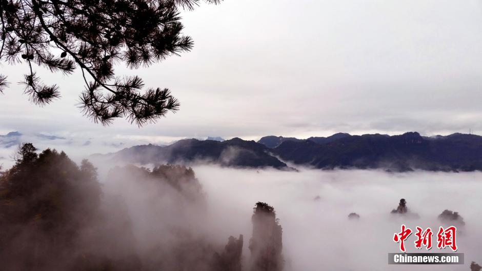 11月20日,连日降雨过后,湖南张家界武陵源核心景区出现成片云海景观,云雾缠绕在俊俏挺拔的山峰间,漫过天际,犹如仙境。 吴勇兵 摄
