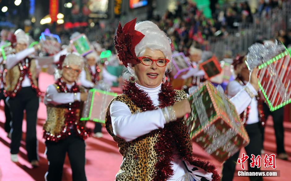 当地时间11月29日晚,第84届好莱坞圣诞大游行在洛杉矶好莱坞星光大道举行,民众在不足摄氏10度的气温中热情观看游行队伍与表演。图为老年人舞蹈队带来圣诞祝福。好莱坞圣诞大游行始于1928年,这项游行已成为洛杉矶庆祝圣诞节的独特方式之一。中新社记者 毛建军 摄